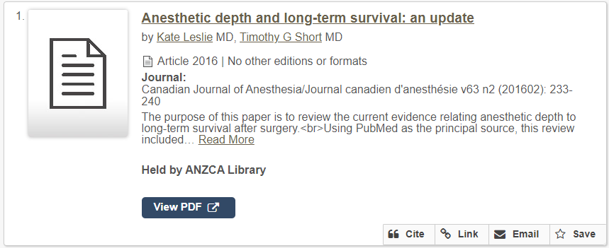 And now Google Scholar can be easily configured to show you which of the search results are available from ANZCA Library. Once configured, just look for the Full text @ ANZCA link when using Google Scholar.